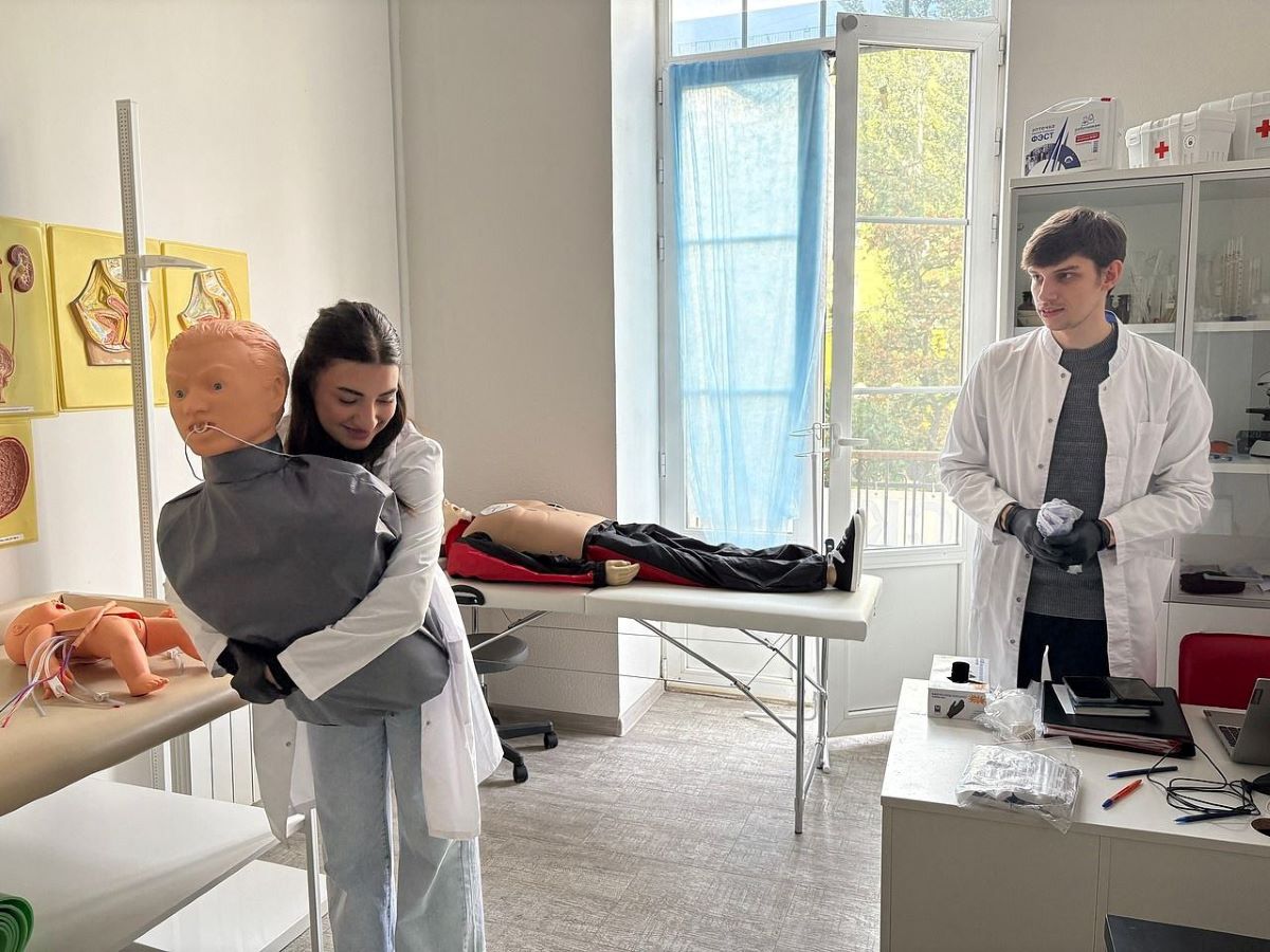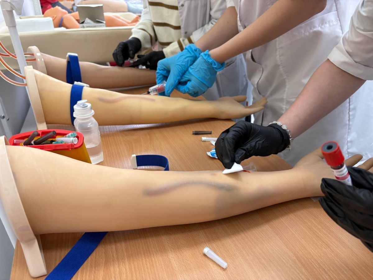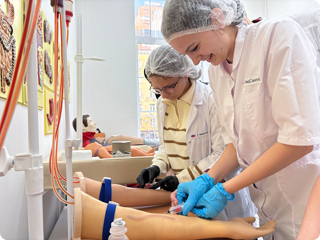 Студенты регулярно проходят практические занятия: от базовых манипуляций — инъекций, измерения давления, ухода за пациентами — до сложных сценариев в условиях, приближенных к реальным. Преподаватели — практикующие медицинские работники, которые передают актуальные навыки и опыт.